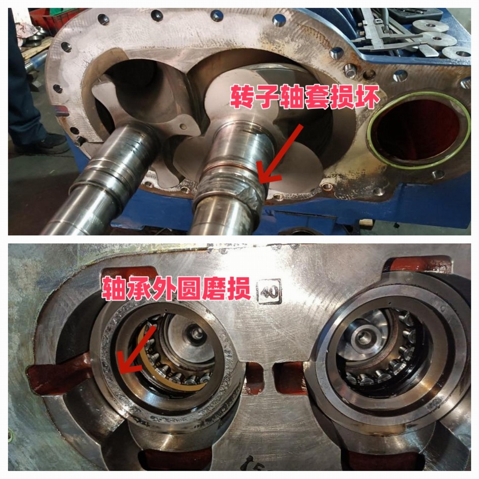 艾珍VML95螺桿風機主油泵失效,造成齒輪及轉子損壞